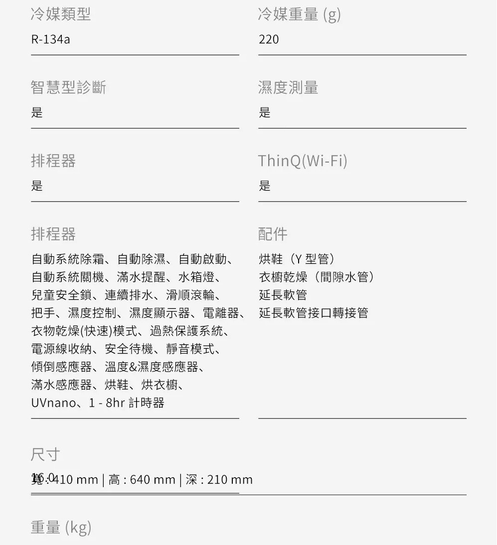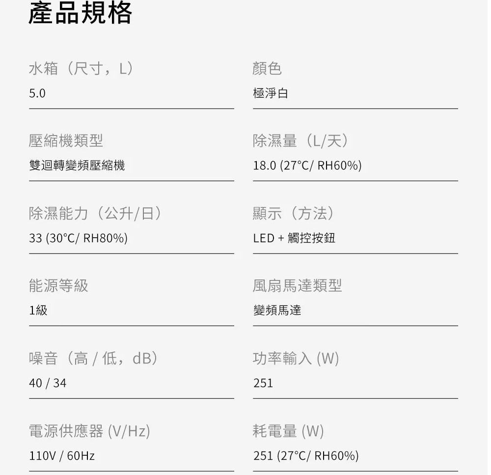 30項安全裝置 | WiFi遠控功能 | 18公升/日除濕量