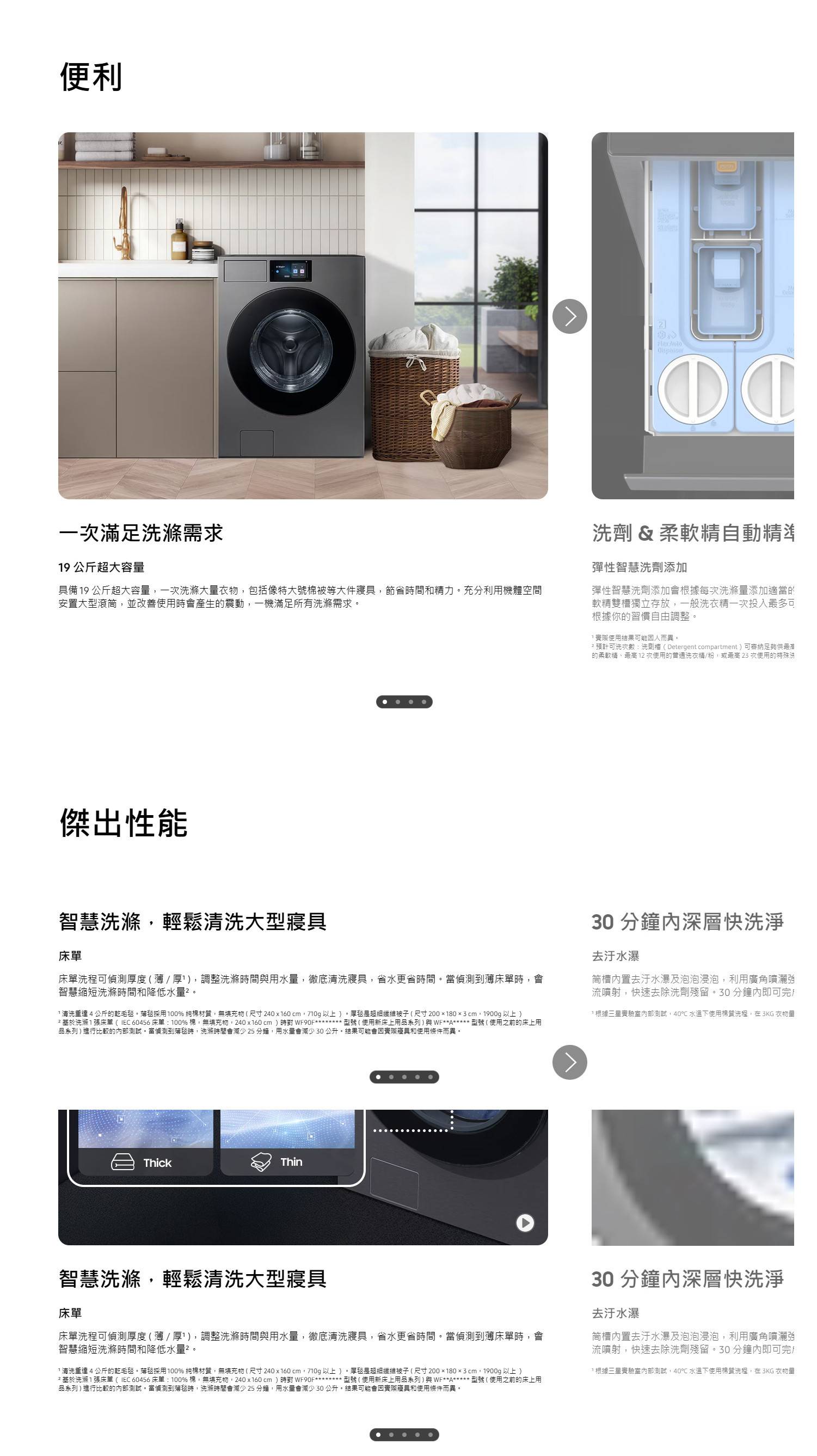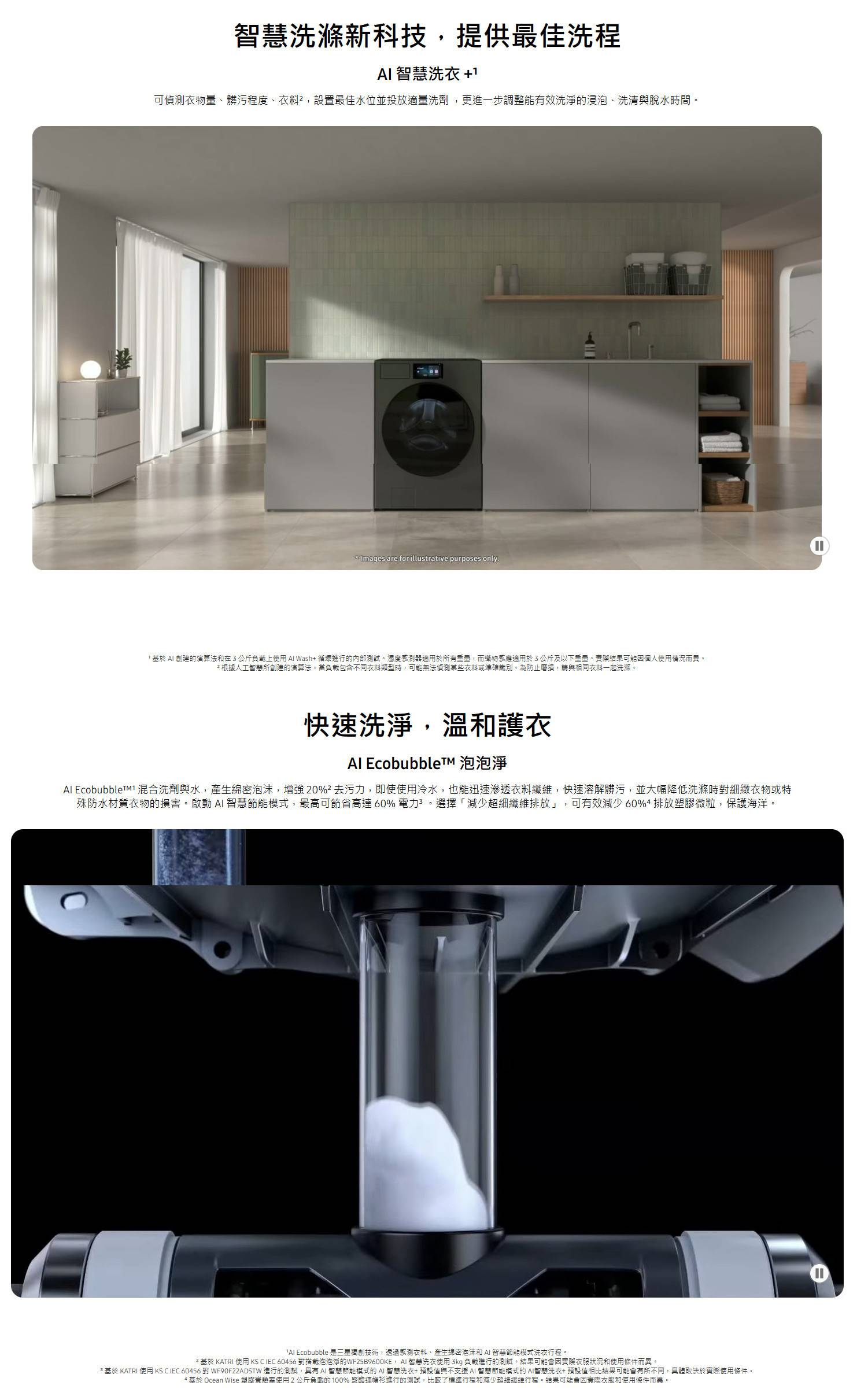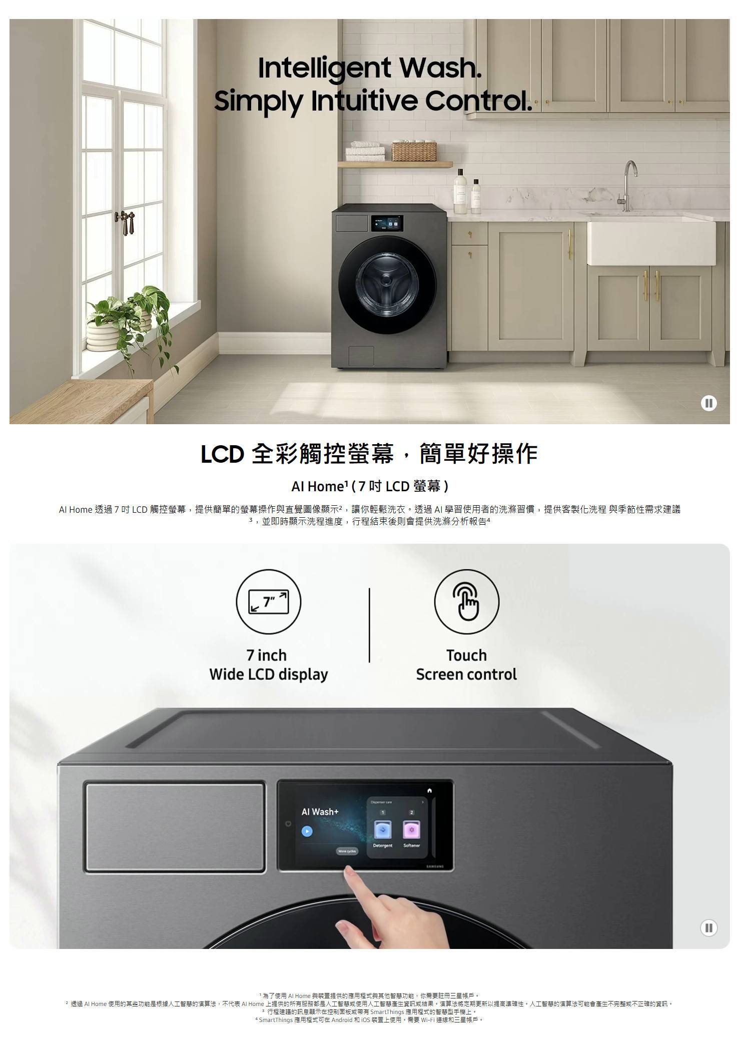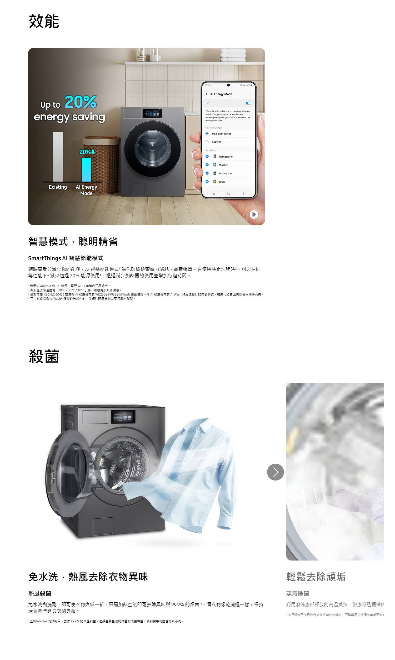 SAMSUNG 三星 19+11KG Bespoke AI™ 智慧熱泵滾筒洗衣機 蒸洗脫烘 WD90F19BCSTW
