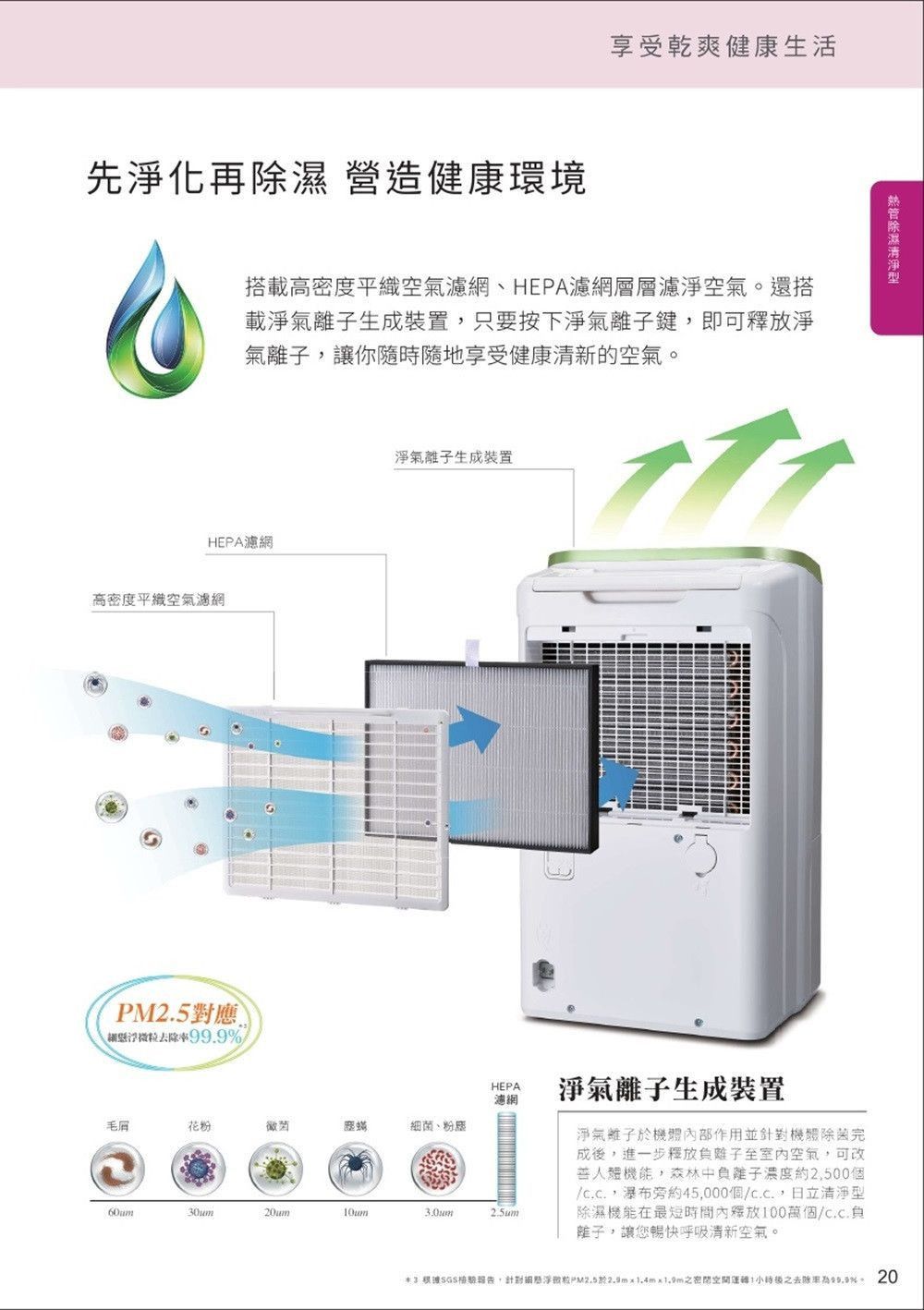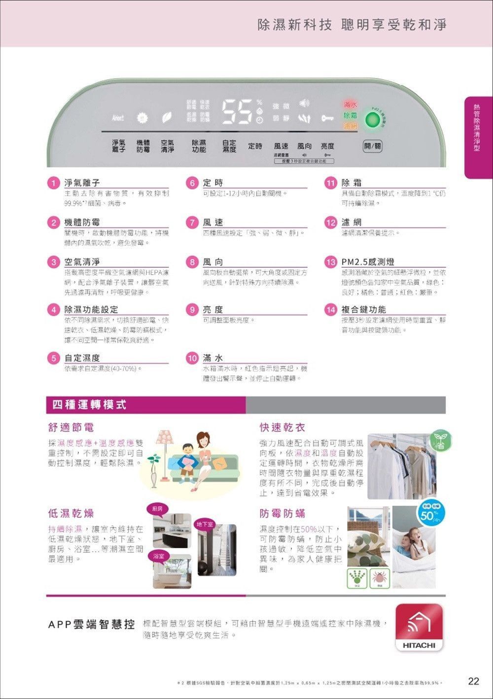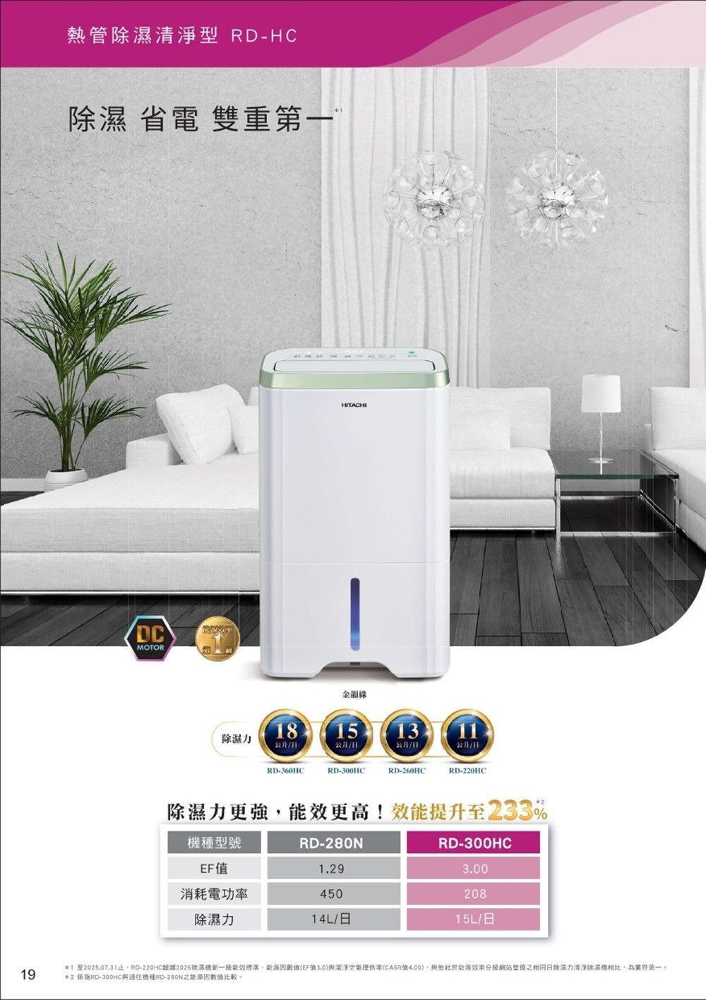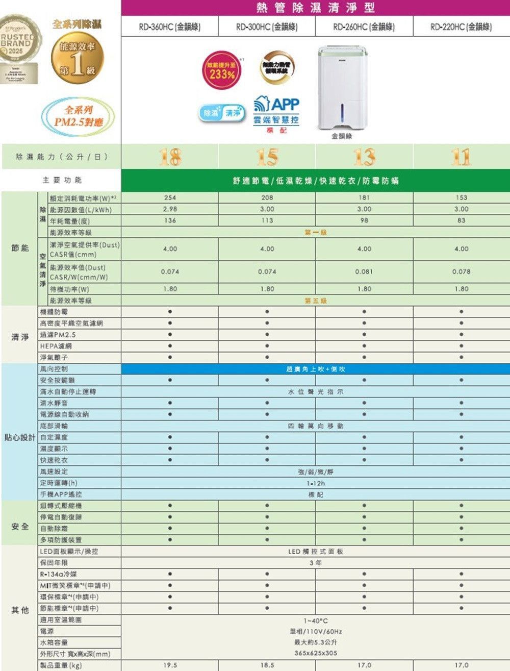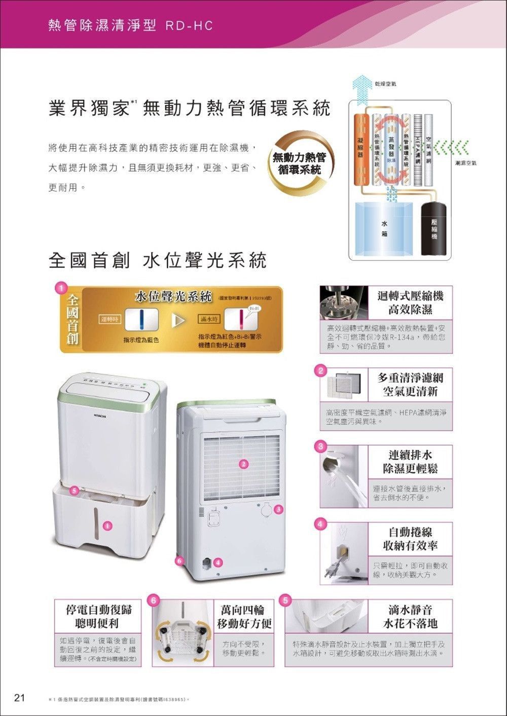 技術規格表:【HITACHI 日立】13公升熱管除濕清淨型除濕機RD-260HC金韻綠