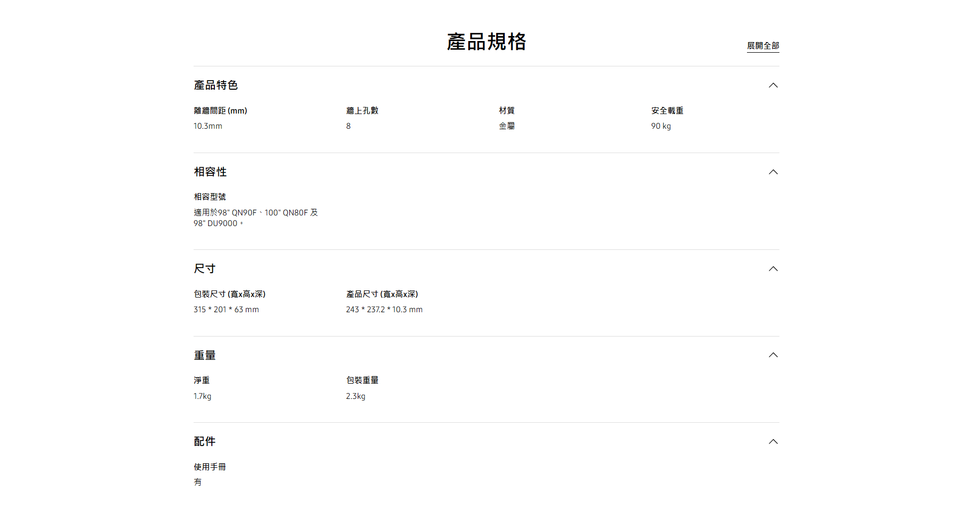相容型號:適用於98" QN90F、100" QN80F 及98" DU9000。