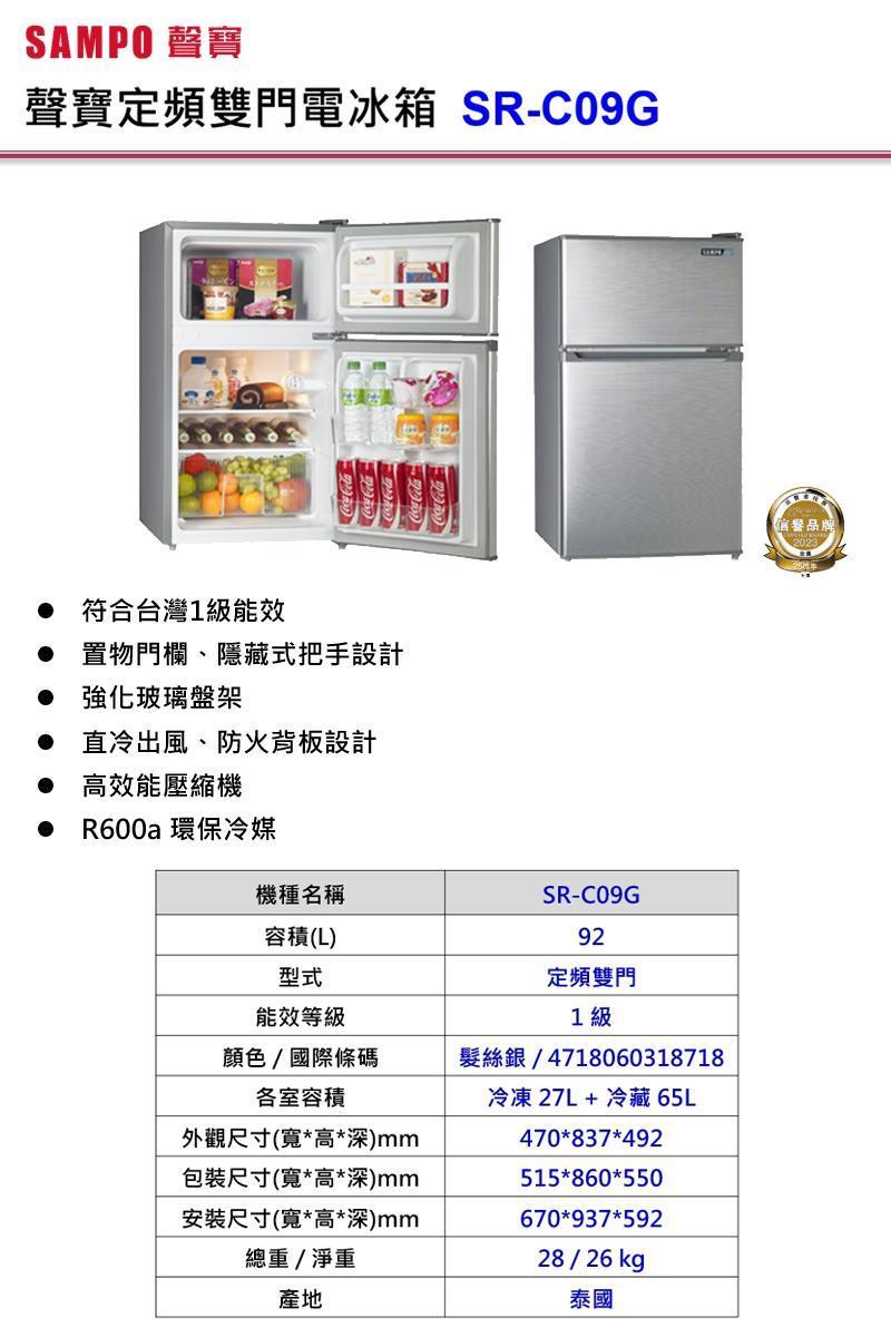 92公升一級能效定頻雙門冰箱(SR-C09G)