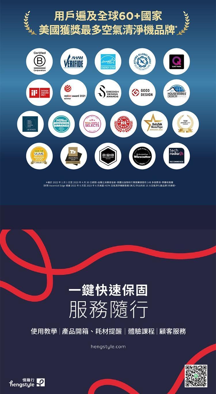 ※耗材: ●濾網更換頻率依個人使用頻率、環境而可能有所不同(機器內附1片,建議6-12個月更換一次)