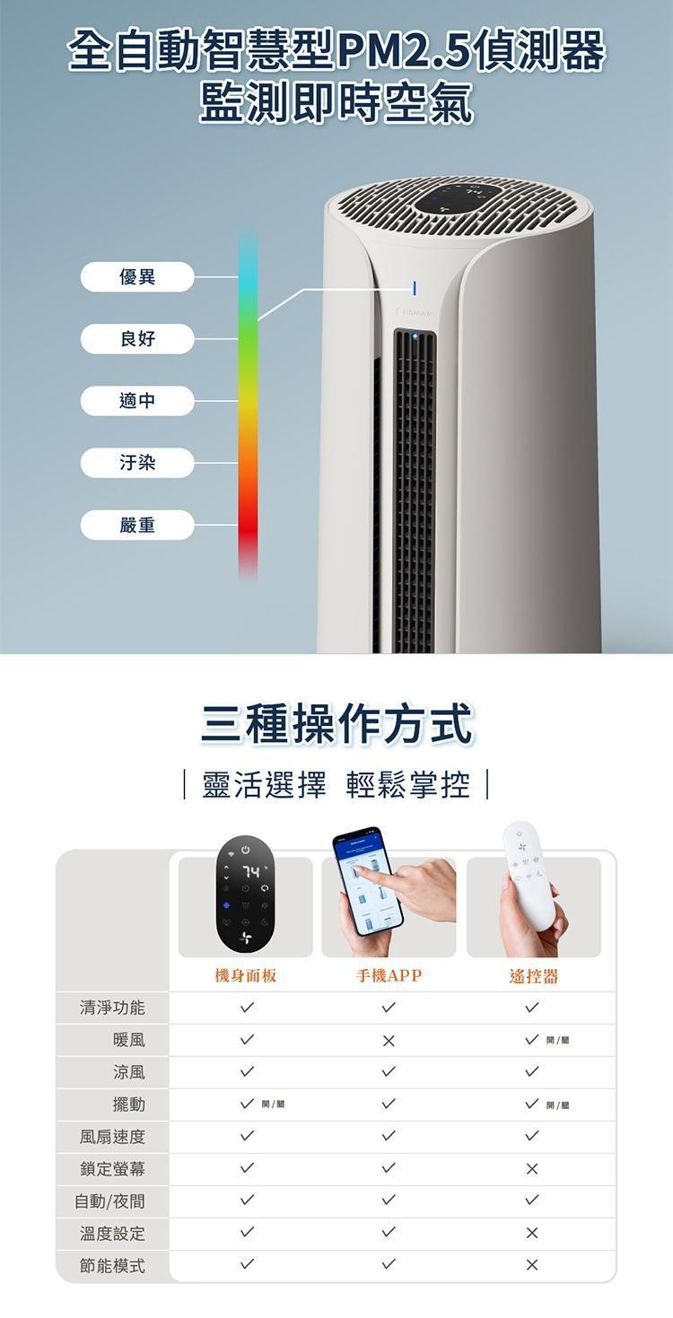 ※空氣品質自動偵測:PM2.5 sensor;5種顏色空氣品質指示燈