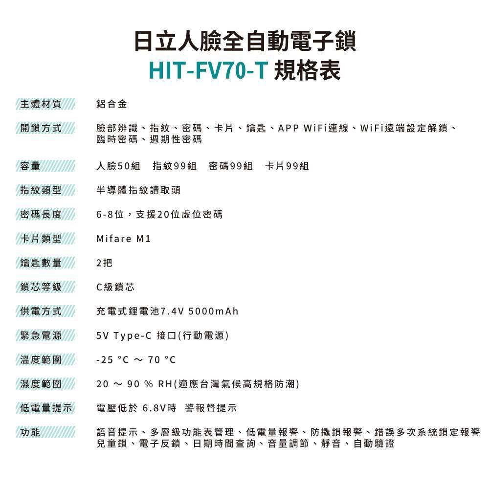 - 【日立人臉全自動電子鎖 HIT-FV70-T 】