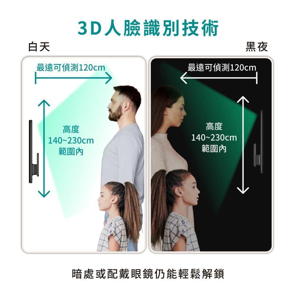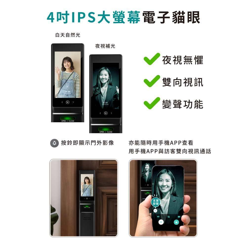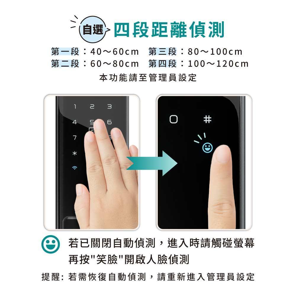 開鎖方式 臉部辨識、指紋、密碼、卡片、鑰匙、APP WiFi連線、WiFi遠端設定解鎖、臨時密碼、週期性密碼