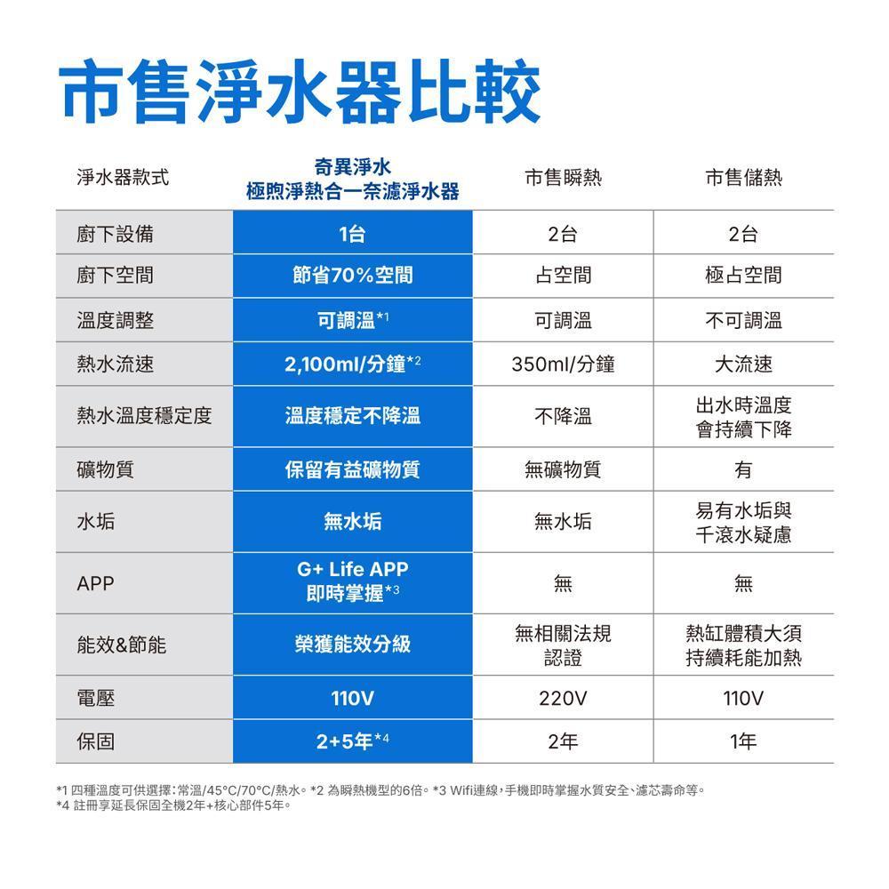 1機搞定:淨水+儲熱二合一,節省廚下70%空間。