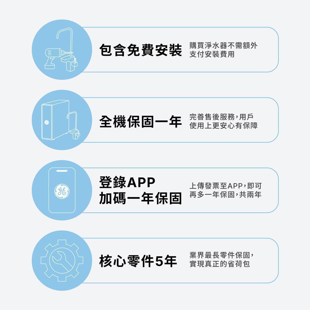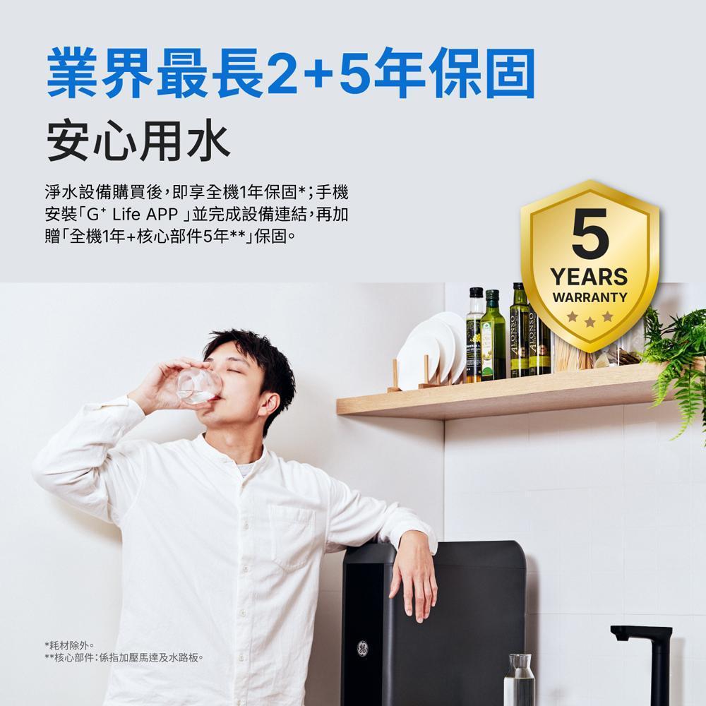 [註1] 註冊APP並上傳購買證明即享延長保固(全機2年、核心部件5年)* ,核心零件(部件)係指水路板及加壓馬達。