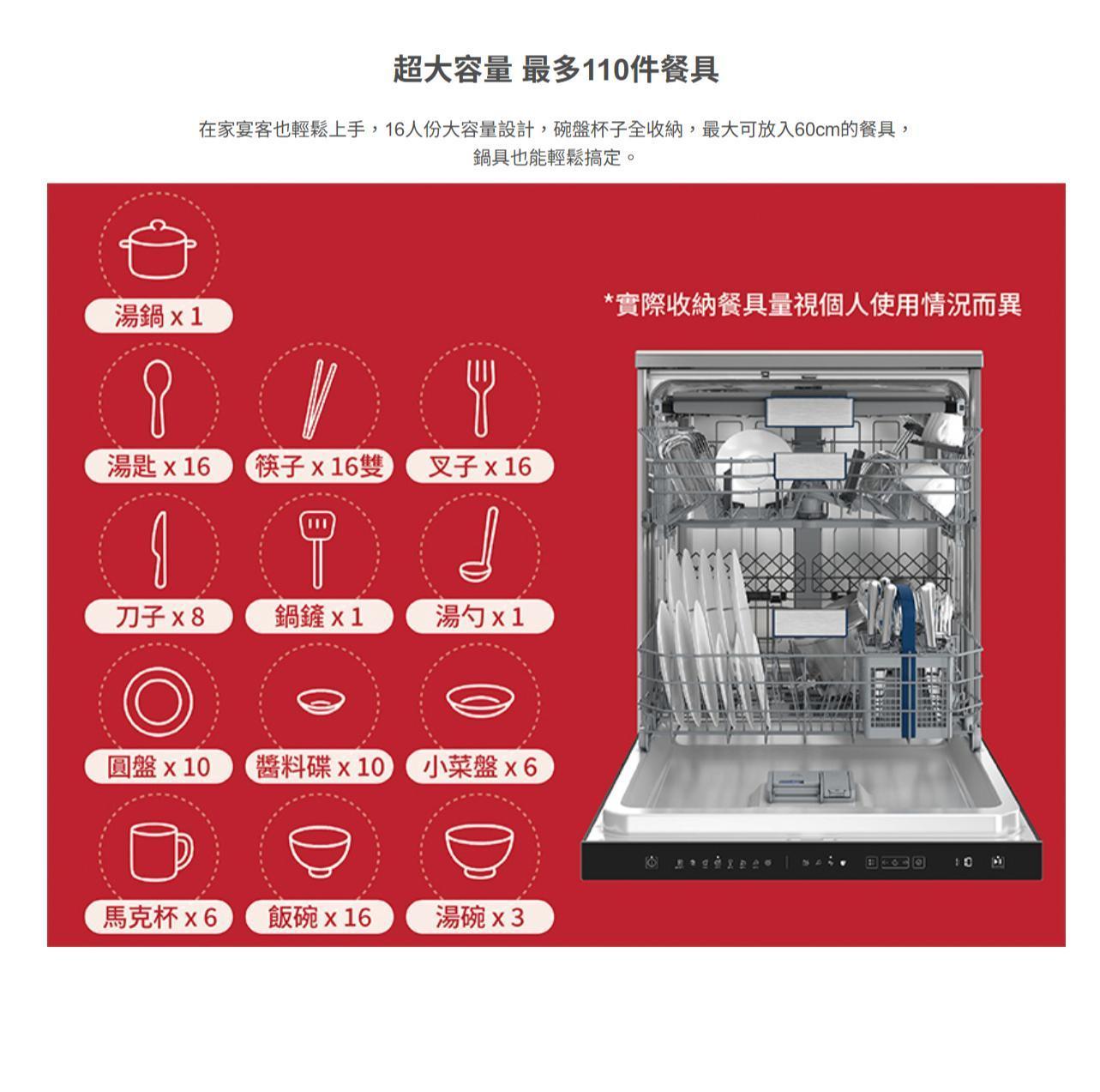 可容納 16 套餐具