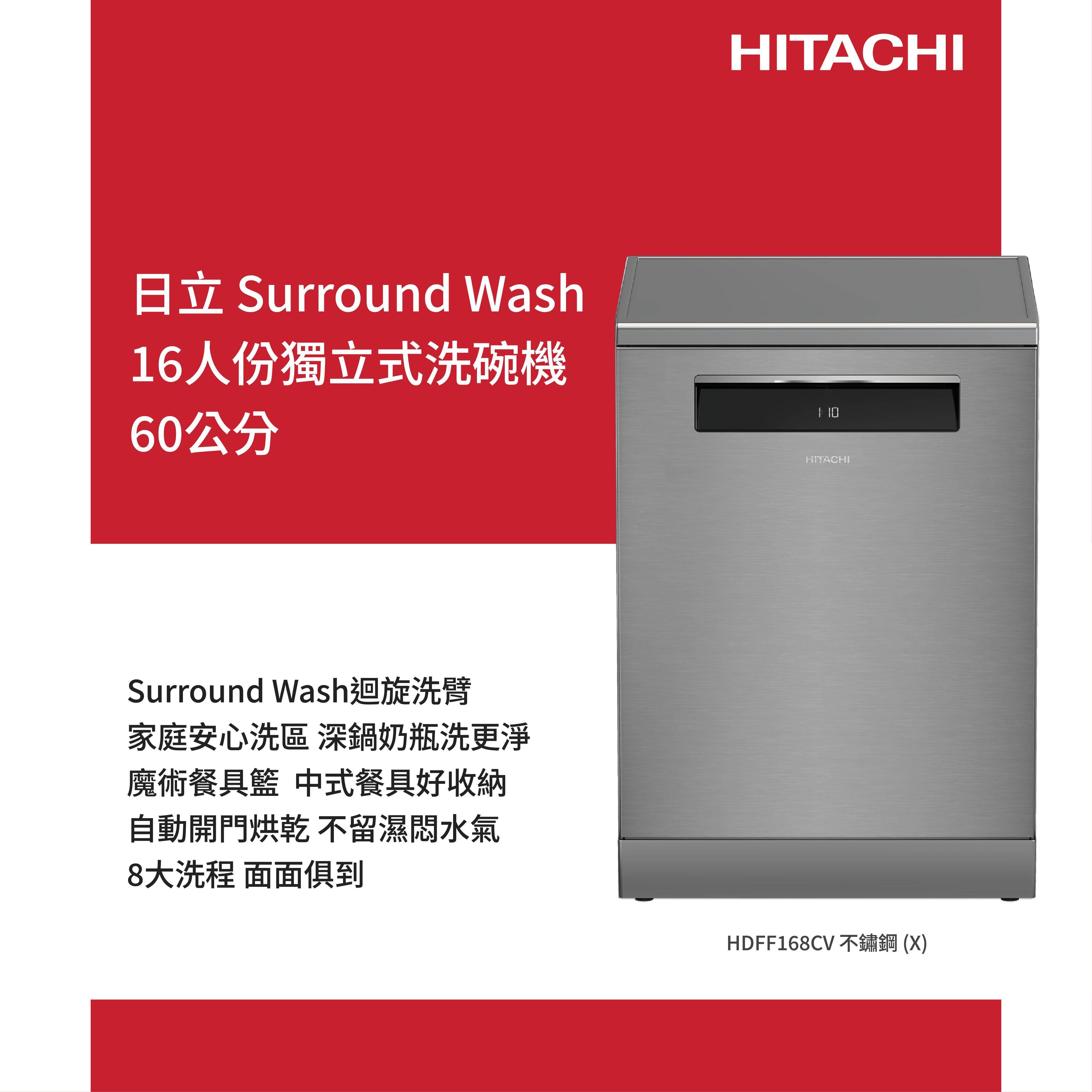 * 錦達 * 【Line詢問超優惠】HITACHI 日立 獨立式不鏽鋼洗碗機 HDFF168CVX|60公分深寬
