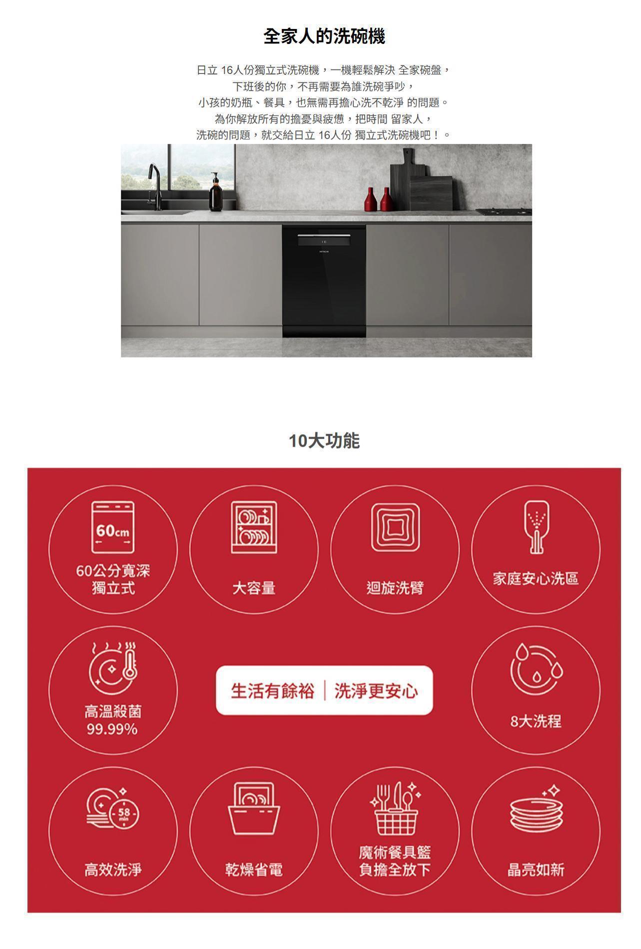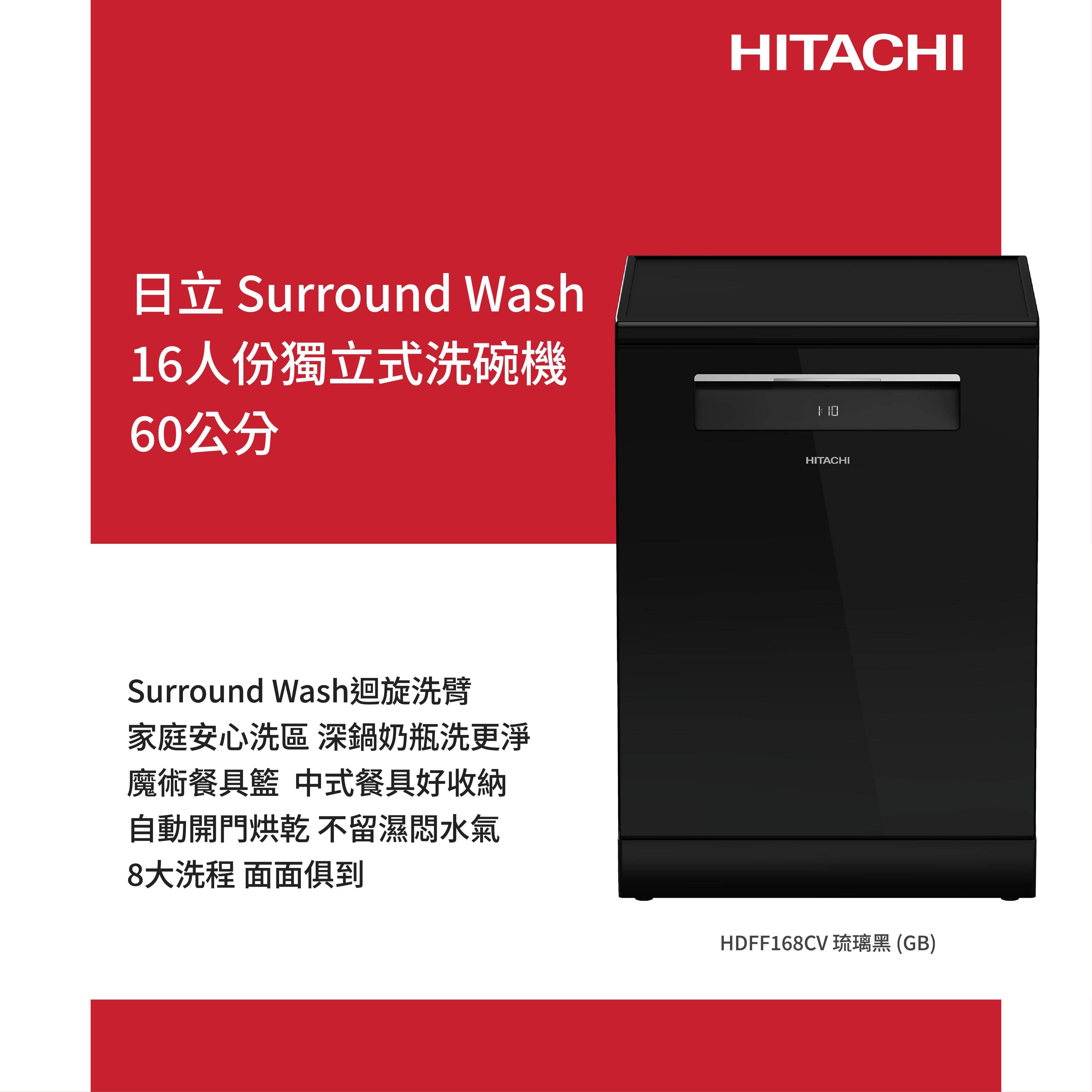 * 錦達 * 【Line詢問超優惠】HITACHI 日立 獨立式美型洗碗機 HDFF168CVGB 琉璃黑|60公分深寬