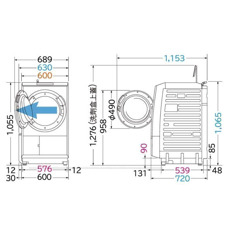 外觀尺寸(寬 * 深 * 高):630 * 720 * 1065 mm (含水管)