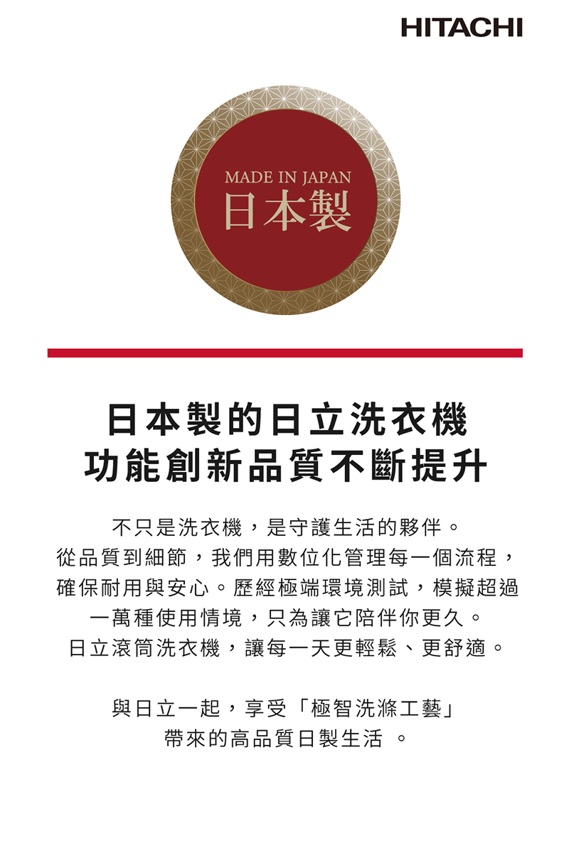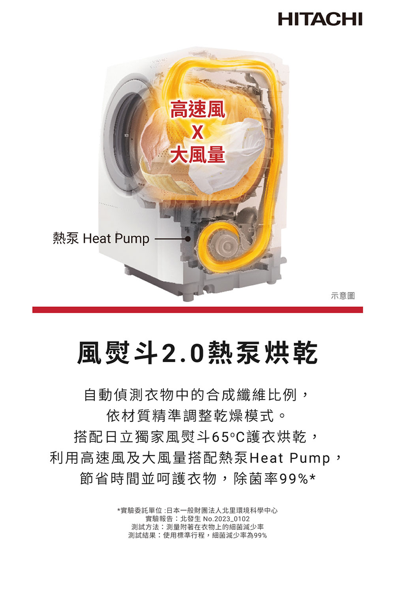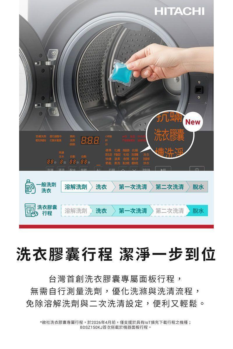 HITACHI日立 15KG日本製熱泵式滾筒洗衣機 BDSZ150KJ,結合大容量設計與熱泵烘乾技術,提供高效且溫和的衣物清潔與乾燥體驗。