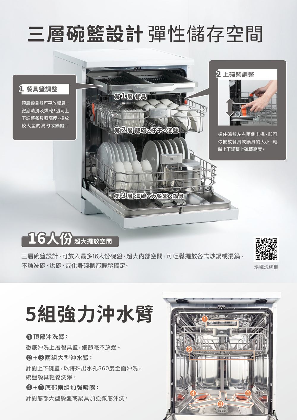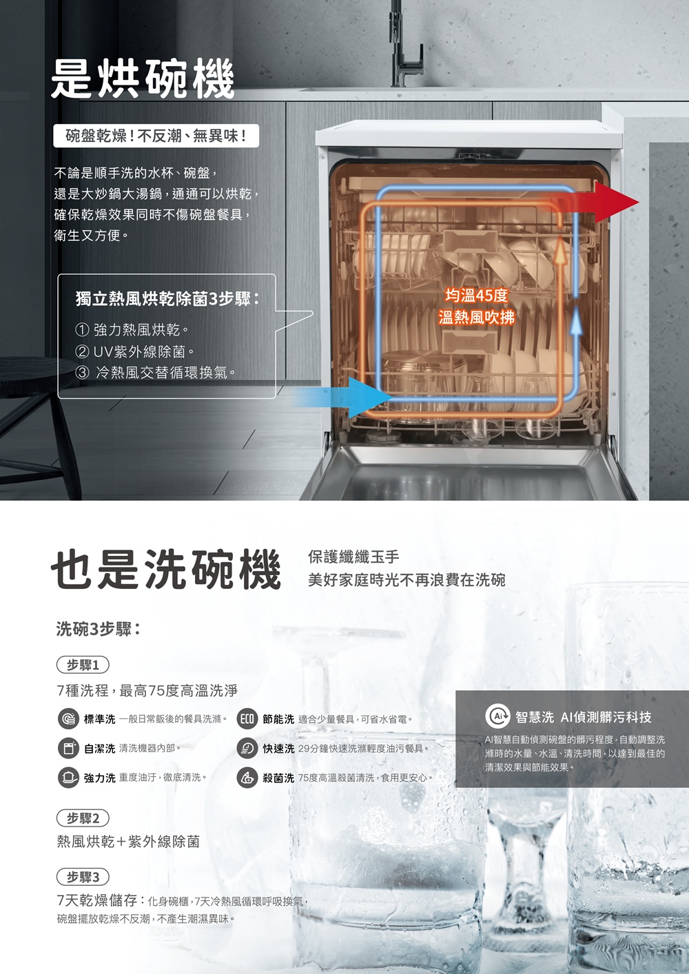 5種洗程:強力、智慧、節能、殺菌、快速