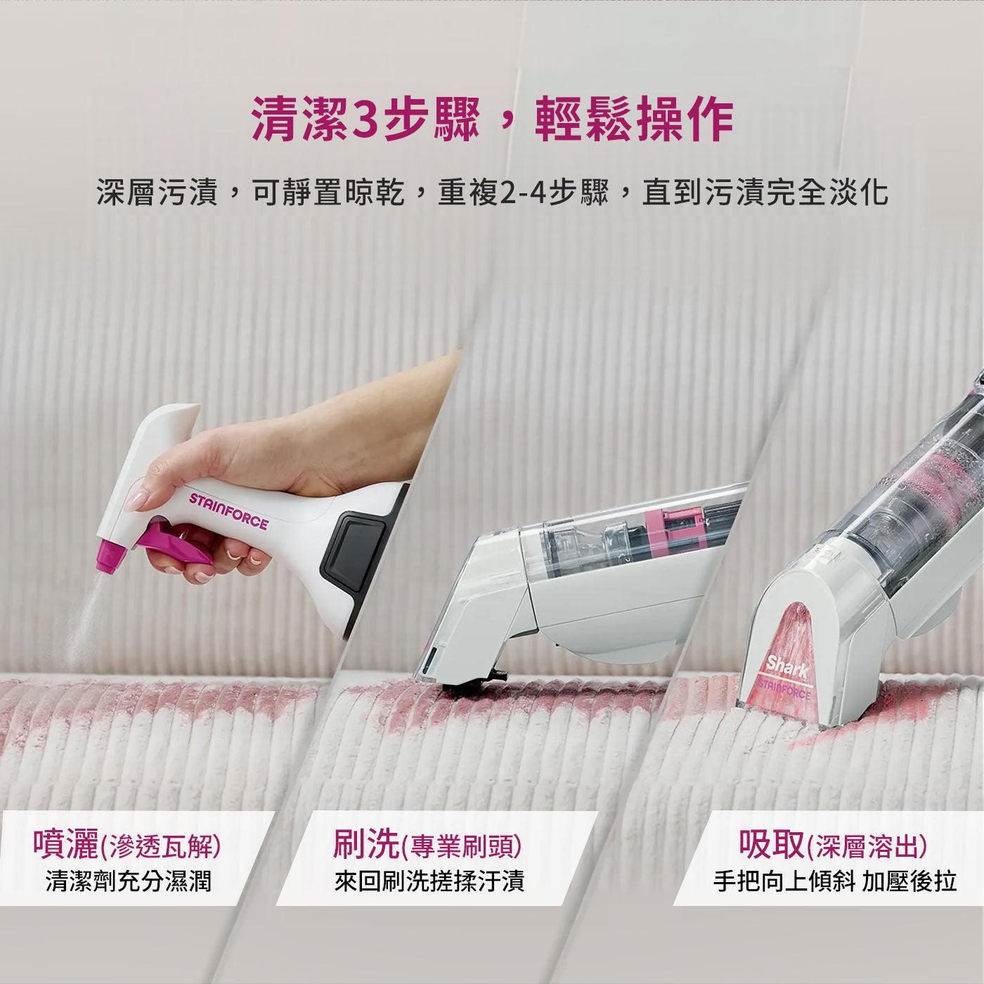 1) 強力去除頑固污漬:去除咖啡、紅酒、寵物、馬克筆和油...等污漬;適用於地毯、毛毯、織品、汽車內裝(不適用於羊毛和硬地板)