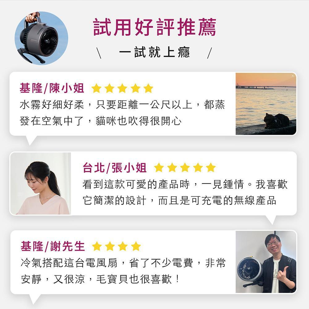 內建水箱:涼感噴霧直送,體溫直降3度* (在風速3,距離90公分,氣溫30度的測試結果。實際結果可能因環境而異)